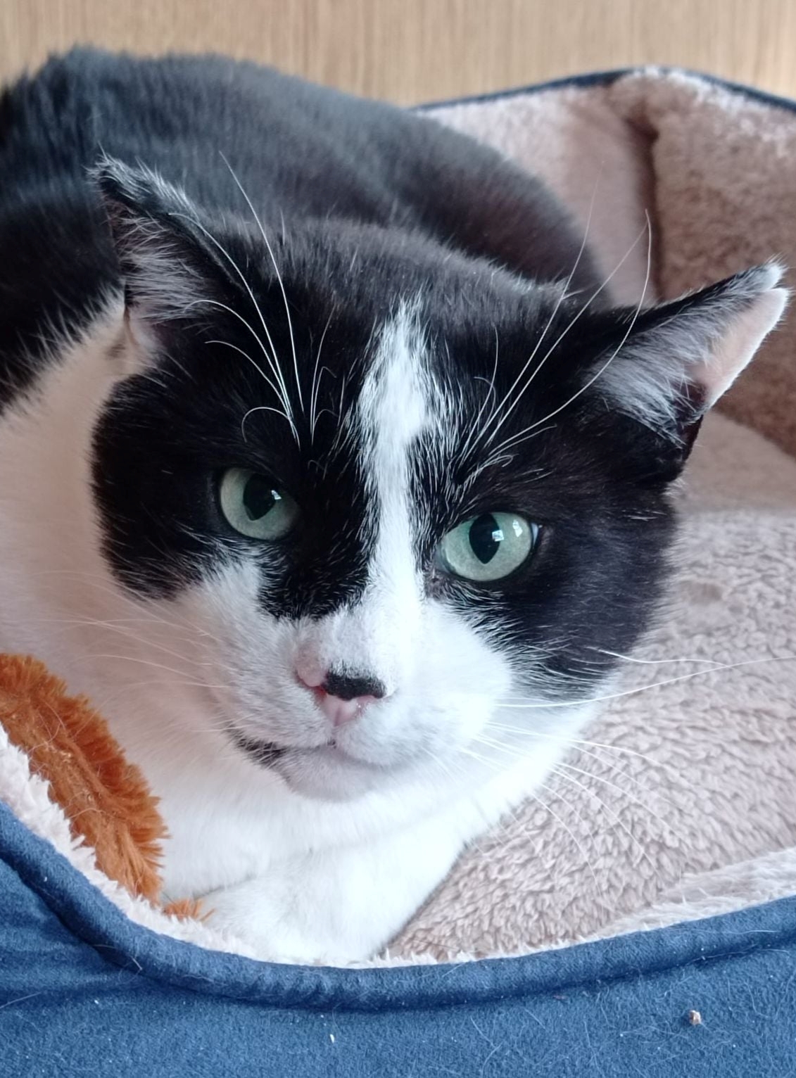Nieśmiały, ale robiący ogromne postępy kot. Potrzebuje trochę czasu aby poznać nowego opiekuna.
