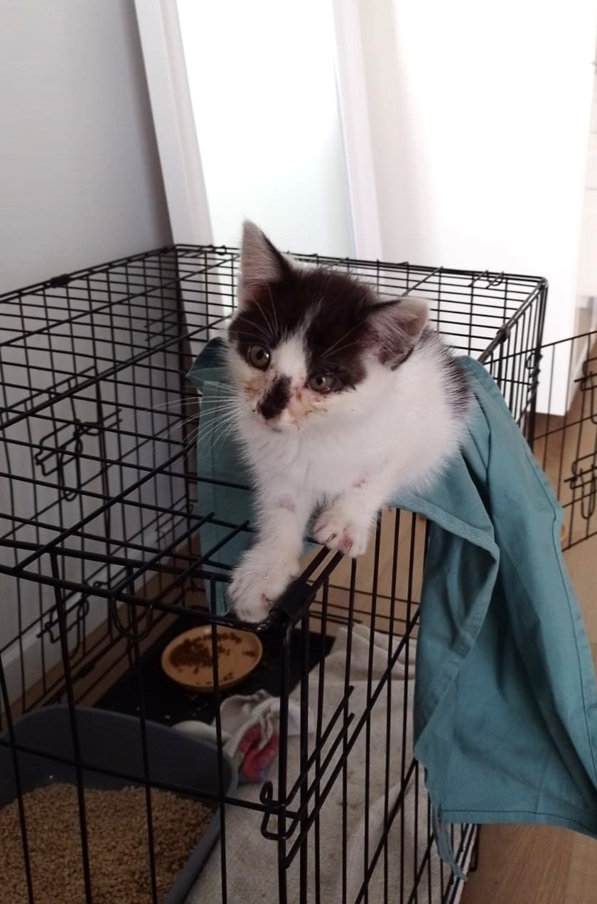 Trafił do lecznicy z chorymi oczkami, został porzucony przez człowieka. Maluch został przebadany weterynaryjnie, obecnie jest w trakcie leczenia oczek w jednym z naszych domów tymczasowych.