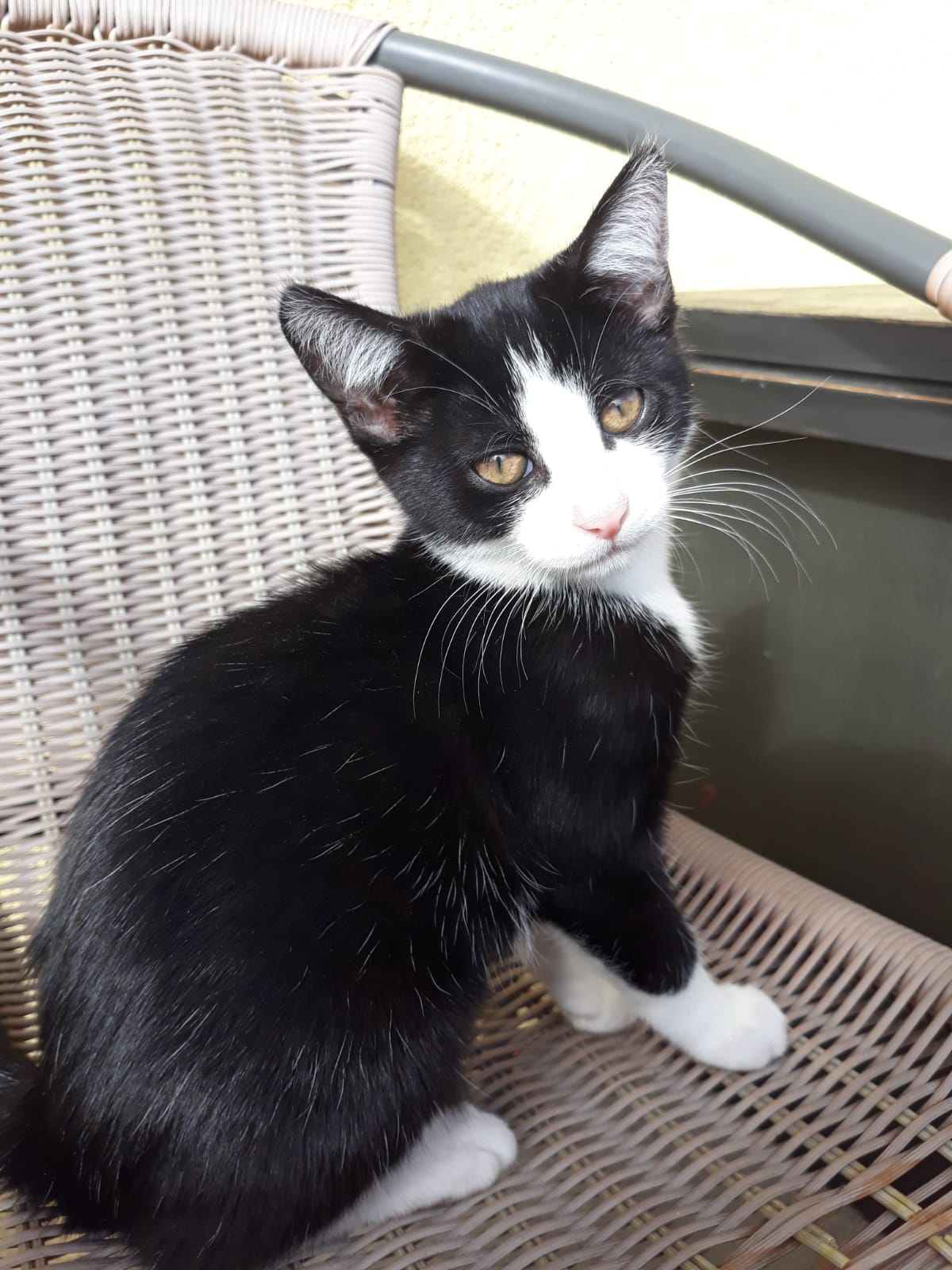 Młodziutki, bardzo dobrze socjalizowany kocurek. Miał stały kontakt z człowiekiem i innymi kotami.