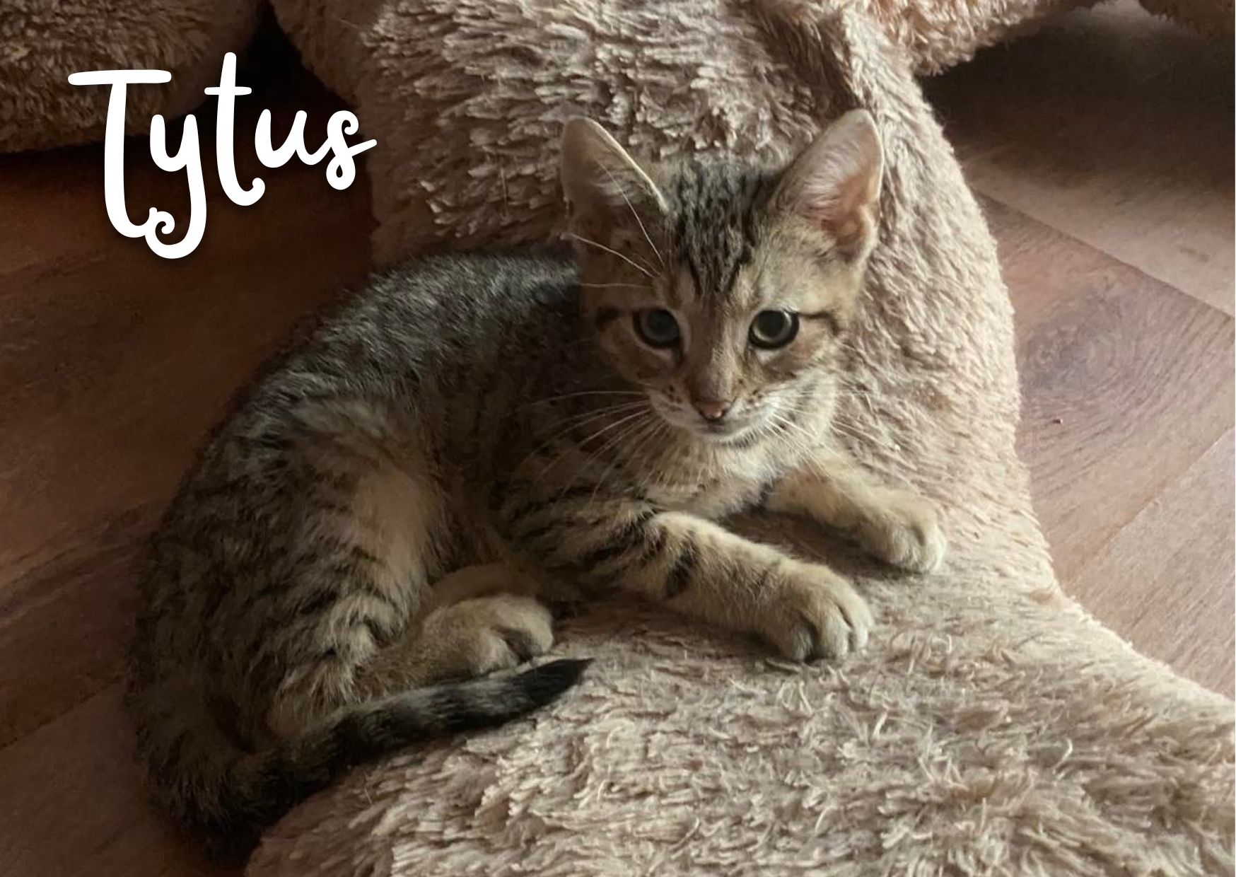 Tytus jest najwspanialszym małym kotem jakiego znamy. Ma zaledwie 3 miesiące, jest drobniutki i milutki. Uwielbia się bawić i nie odmówi głaskania i przytulania.