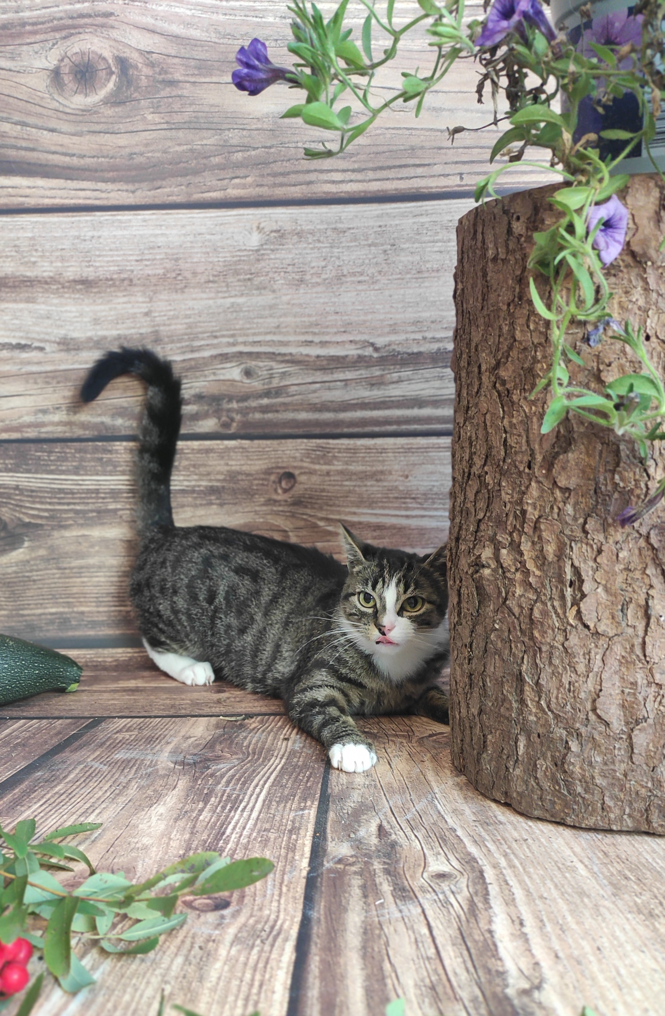 Kotka jest już po zabiegu kastracji. Jest naprawdę bardzo drobniutka co wyróżnia ją na tle innych kotów w naszym stadzie.