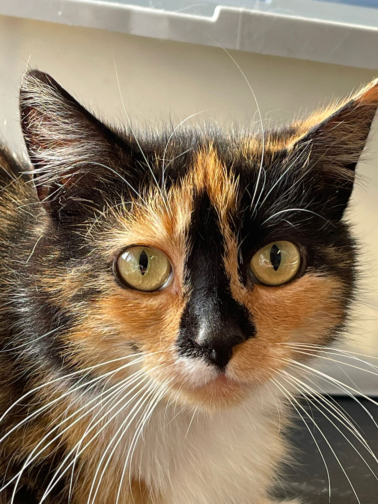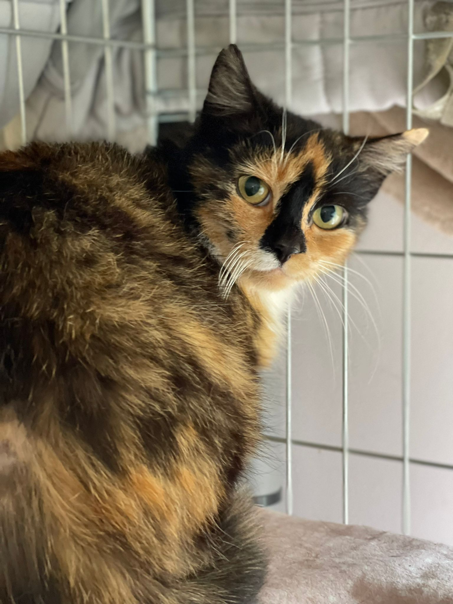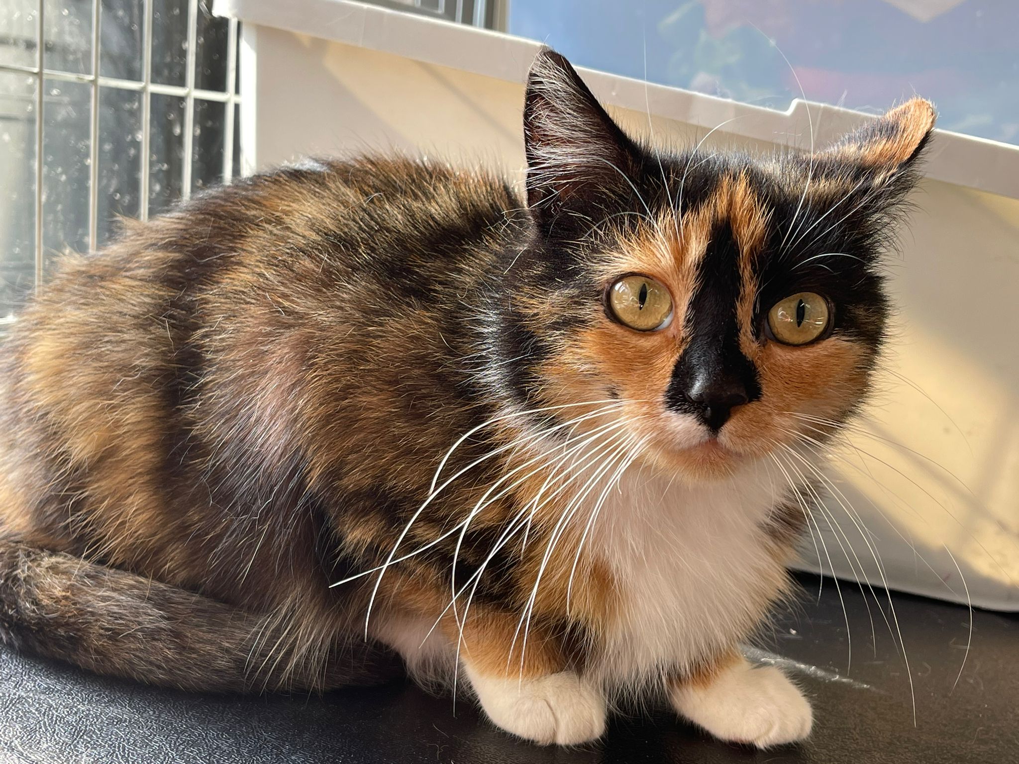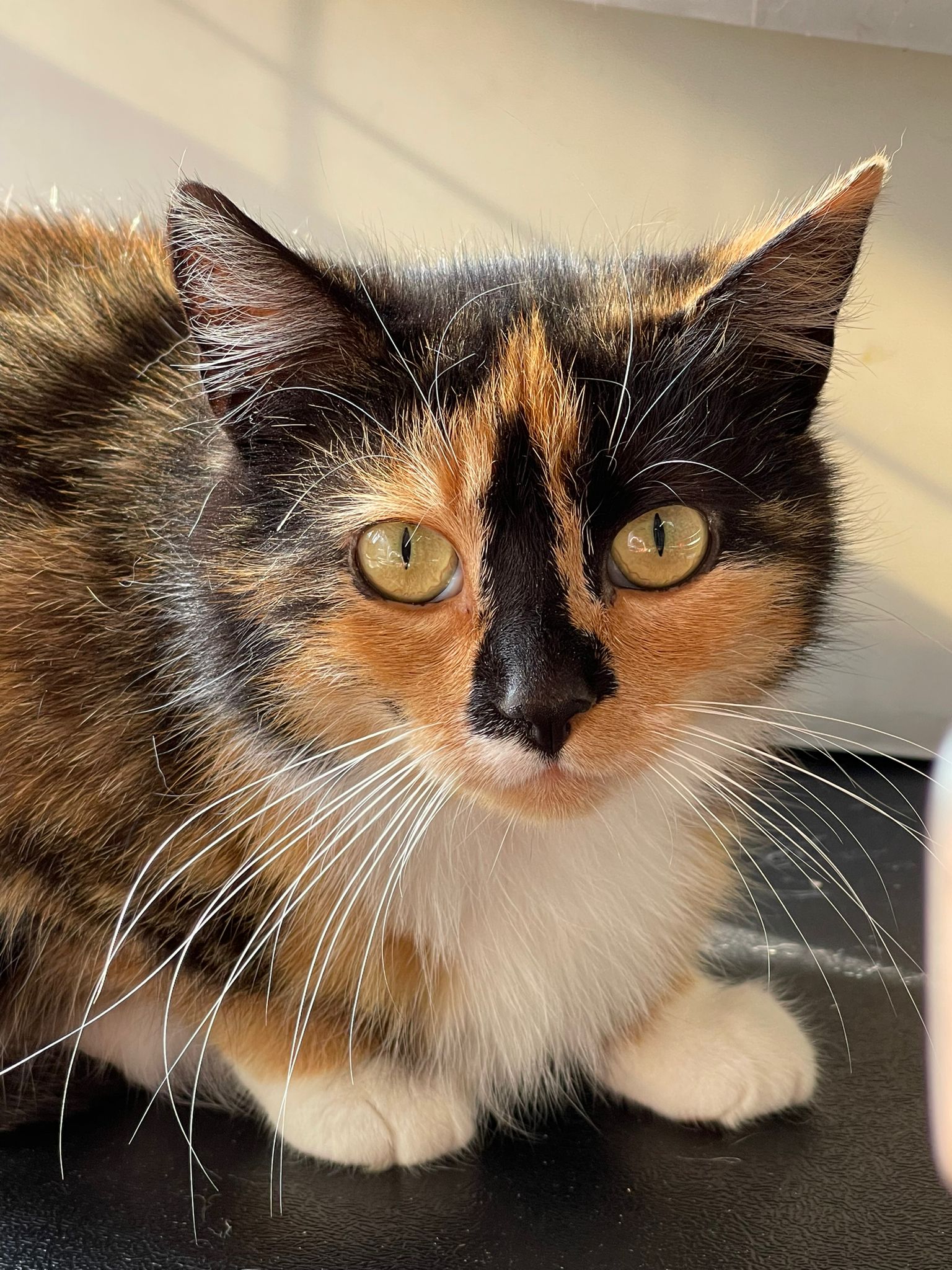 Trico jest młodziutką około 2 letnią kotką, jeszcze jest trochę nieśmiała w stosunku do nowych osób ale pozwala się głaskać. Potrzebuje bardzo wyrozumiałej rodziny, która da jej trochę czasu na oswojenie się z nową sytuacją w życiu.