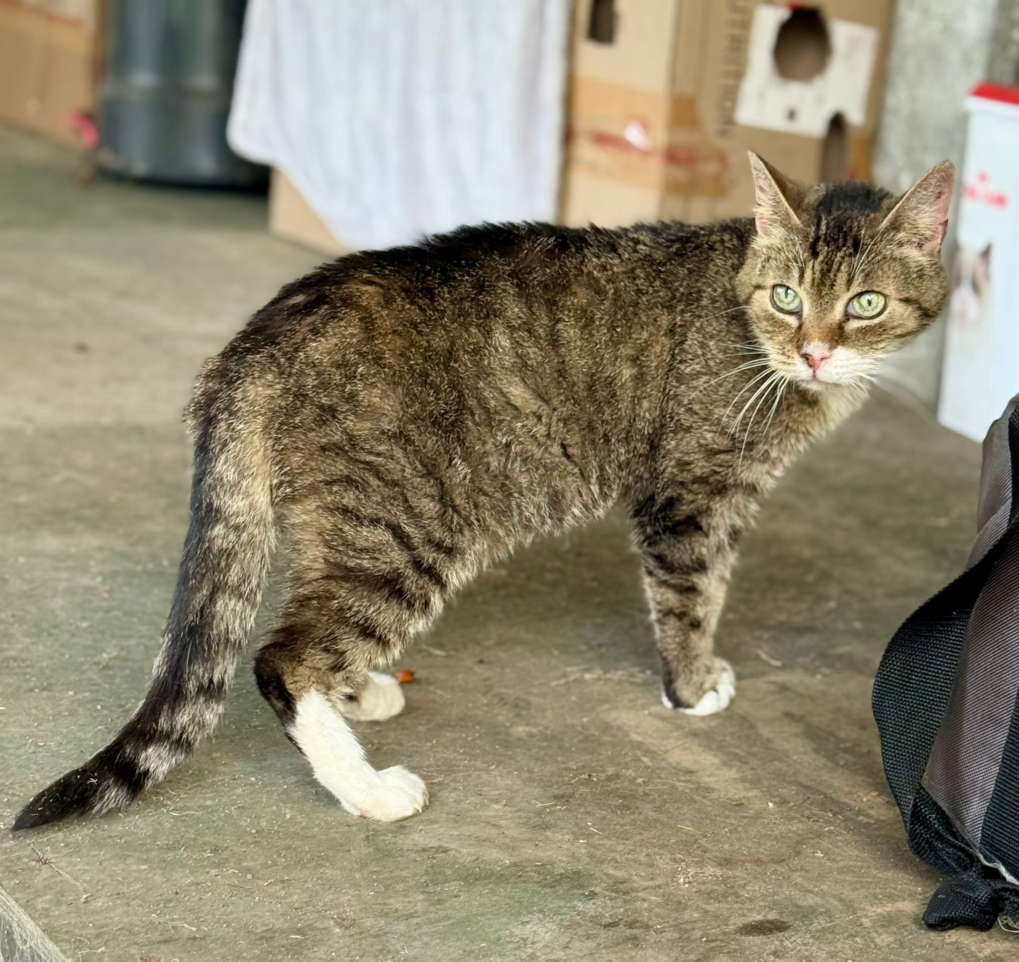Kotka po przejściach trafiła do nas chora i bardzo zaniedbana, dziś jej stan jest już stabilny. Kotka po kastracji.